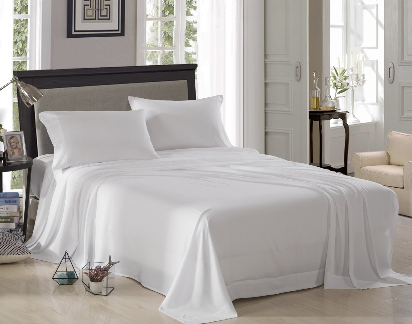 72% off on 1800 Brushed Microfiber Bed Sheet Set, Ultra Soft, Queen - White $13.99