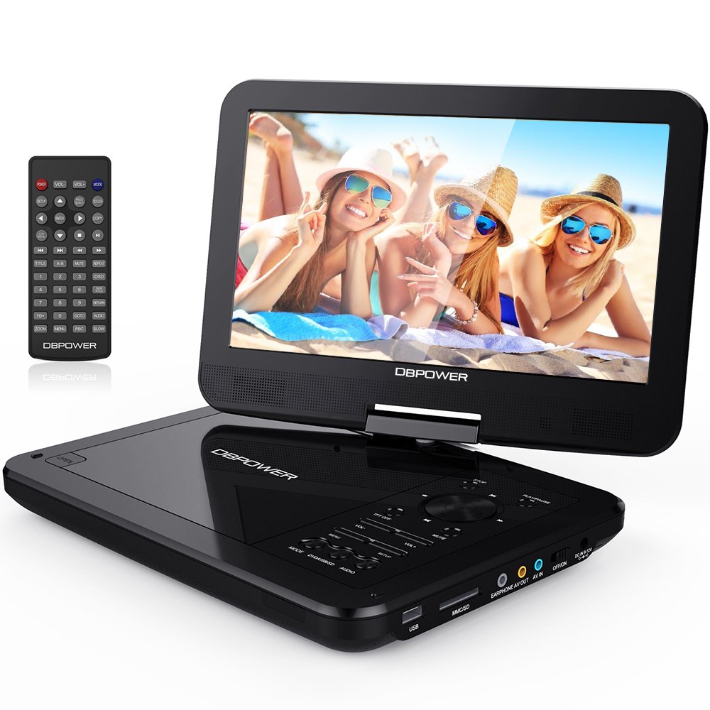 20% Off DBPOWER 10.5' Portable DVD Player with Swivel Screen, 4 Hours Rechargeable Battery, SD Card Slot and USB Port.