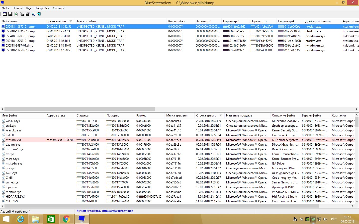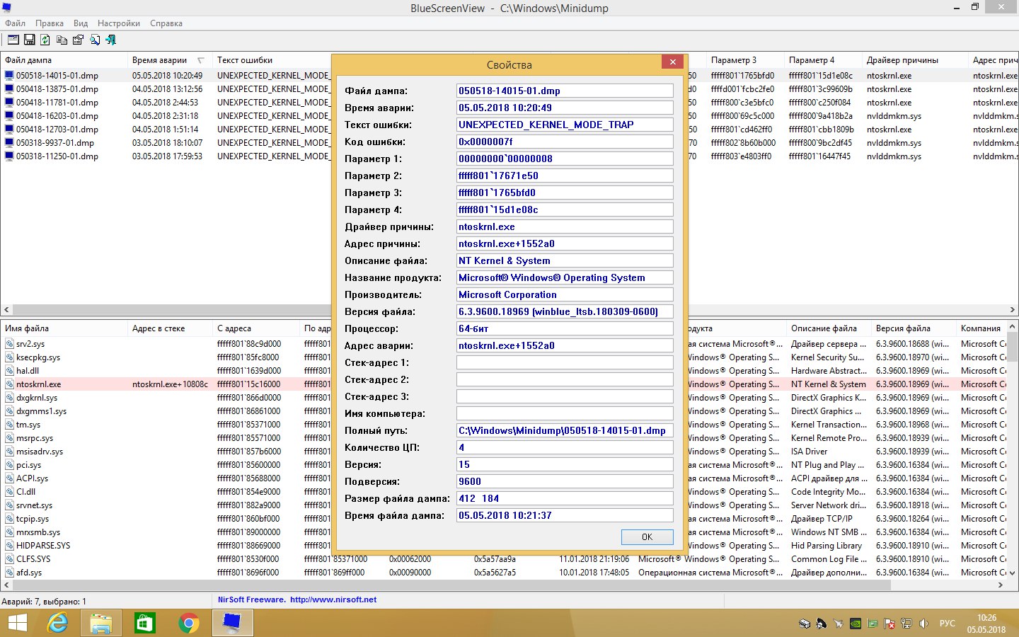 Here are screenshots of BSODs from Bluescreenview: