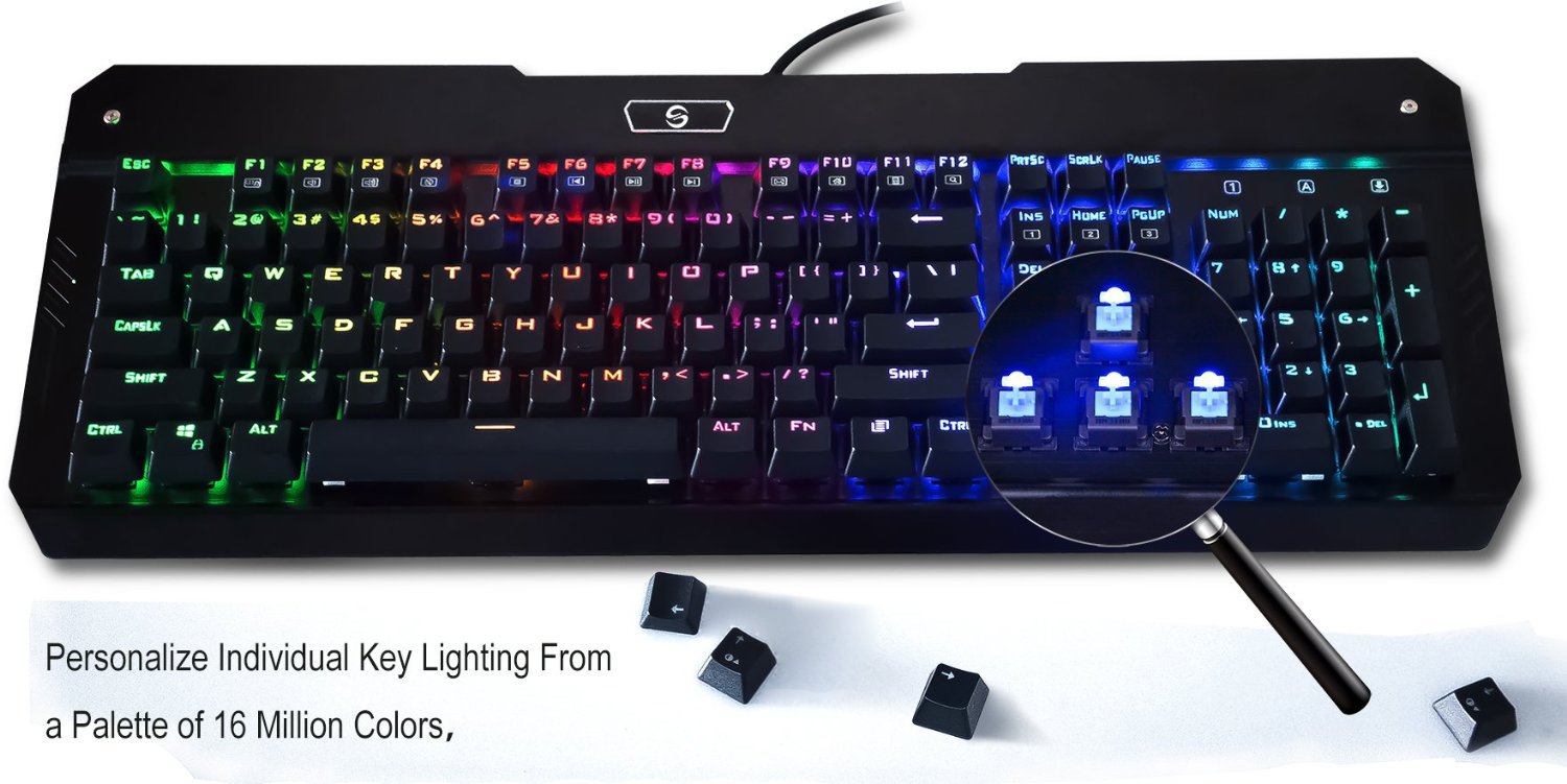 6.Multicolor per-key backlighting for virtually unlimited game customization